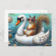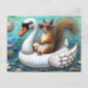 Cute Squirrel on a Swan Floatie Postcard