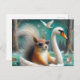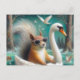 Cute Squirrel on a Swan Floatie with Swans Flying Postcard