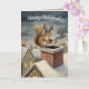 Cute Squirrel Playing Santa Drawing Christmas Card