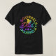 I give wanted to give this a 4 instead of a 5 because these Basic DARK T0shirts run unexpectedly SLIM or Narrow. Which is great if you do not have a potbelly, but I have a paunch. It isn't the shirt's fault that I've got a beer belly. The design and shirt itself is a quality cotton shirt. The color is more of a deep purple, but still a very pretty color. The Basic DARK T-shirts run a bit SLIMMER than the Basic Ts. The neck is a fraction narrower (or seems to be narrower) also. I'm a paunchy middle-aged woman and my neck is 12 inches (31cm) thick and the neckline fell about the same as in the photo of the man, and I had the desire to tug it a bit. So if you're a thick necked man or like loose shirts, be aware these are slimmer shirts. Once I get rid of my lockdown paunch it'll look great. The shirt washed well in cold water with no apparent bleeding. We don't have a dryer, so it hung dry. Did not shrink. Love the colors and the design. The design looks smaller on my shirt than it does on the model on-line. But still, it looks good on the shirt. The printing looks as it does on the model, just the size seems fractionally smaller. Washed garment in cold water, hung dry and design appeared unaffected.