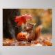 Cute Squirrel with a Leaf Umbrella - Autumn Rain Poster