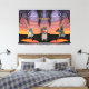 Personalise (add your text or change the images) of three cute wild Florida animals, Eastern grey squirrels at Sunset with reflection photography, designed on Zazzle Premium Wrapped Canvas (Gloss). Florida wildlife. Florida wilderness. Florida nature. Sunset in Florida. Palm leaves silhouettes. Rodents.