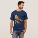 I give wanted to give this a 4 instead of a 5 because these Basic DARK T0shirts run unexpectedly SLIM or Narrow. Which is great if you do not have a potbelly, but I have a paunch. It isn't the shirt's fault that I've got a beer belly. The design and shirt itself is a quality cotton shirt. The color is more of a deep purple, but still a very pretty color. The Basic DARK T-shirts run a bit SLIMMER than the Basic Ts. The neck is a fraction narrower (or seems to be narrower) also. I'm a paunchy middle-aged woman and my neck is 12 inches (31cm) thick and the neckline fell about the same as in the photo of the man, and I had the desire to tug it a bit. So if you're a thick necked man or like loose shirts, be aware these are slimmer shirts. Once I get rid of my lockdown paunch it'll look great. The shirt washed well in cold water with no apparent bleeding. We don't have a dryer, so it hung dry. Did not shrink. Love the colors and the design. The design looks smaller on my shirt than it does on the model on-line. But still, it looks good on the shirt. The printing looks as it does on the model, just the size seems fractionally smaller. Washed garment in cold water, hung dry and design appeared unaffected.