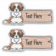 A cute sticker featuring a St Bernard. A great way to label your personal items. Change the text to personalize.