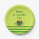A cute paper plate just in time for St. Patrick's Day, this item features a lime green background with "Happy St. Patrick's Day" written in green font with a pot of gold underneath. There are also green stripes at the very button. Add good fortune to your St. Patrick's day celebration today!