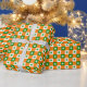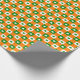 Four leaf clovers on green, white and orange plaid background, bringing good fortune, blessings and faith for birthday, St Patrick's day or any occasion gift wrap