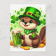 An adorable St. Patrick's Day otter with its green beer and gold coins AI generated art