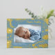 Announce the arrival of your baby boy in stellar style with a truly one-of-a-kind birth announcement! From the moment he entered your world, everything has been brighter, and this stunning light blue and gold card perfectly captures that joy. Featuring a shimmering gold foil crescent moon, twinkling stars, and glowing constellations, your baby’s adorable photo takes centre stage in this enchanting design. It’s more than just a card—it’s a celebration of love, excitement, and the beginning of a beautiful journey. Share this joyful keepsake, shining with the magic of your newest family member, and treasure the moment forever!