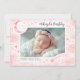 Welcome your newborn to the world with a celestial birth announcement as magical as her arrival. Your baby girl deserves a unique and special introduction from the very first moment she arrives. This beautifully designed light pink photo card captures the joy, love, and dreams that have come true with her birth. Surrounded by a moon, sparkling stars, and twinkling constellations, your baby’s photo becomes the centerpiece of this enchanting keepsake. It's a celebration of love, family, and the beauty of life, as you and your loved ones are truly over the moon with joy.