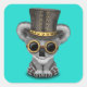 This unique design features a baby Koala with a steampunk top hat and goggles. The cute little koala is looking forward with its head slightly tilted giving it a curious look. The over sized head and small body along with the details in the fur and steampunk accessories create a beautiful combination of a cartoon and realistic look. The brass and leather accents in the hat and goggles give this adorable koala design a steampunk look