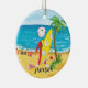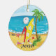 Our unique personalised & dated surfer christmas ornament features the cutest stick figure surfer boy set on blue ocean water background with a palm tree! Personalise with your information and date and you're all set to go! Wonderful dated keepsake gift for your christmas tree and a great addition to you christmas ornament collection.