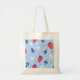 Cute Strawberry and Spring Flower Pattern on Blue Tote Bag