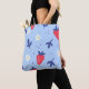 Cute Strawberry and Spring Flower Pattern on Blue Tote Bag