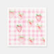 Cute Strawberry Berry Pink Gingham Brithday Napkins