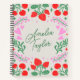 This colorful notebook cover features cheerful strawberries, bright cherries, pink hearts, and playful greenery arranged in a fun decorative frame. The bold colors and hand-drawn style create a sweet aesthetic perfect for school, journaling, or gifting. A personalized name in flowing script adds a special touch that makes this product feel unique and joyful. This design is ideal for anyone who loves cute fruit motifs and bright, happy stationery.