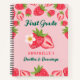 Cute Strawberry Custom Name Pink Kids Grade School Notebook