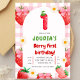 Cute Strawberry Fruit Daisy Berry First Birthday Invitation