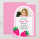 Cute Strawberry Girl Photo 1st Birthday Invitation