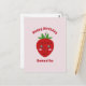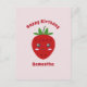 A pink Happy Birthday Postcard with customisable message and a cute strawberry illustration in Kawaii style. Send it for the birthday of your friend or a family member!
