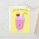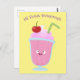 Cute strawberry ice cream sundae cartoon postcard