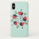 Cute strawberries iPhone case with a vector illustration depicting 5 happy smiling strawberry characters dancing in a circle surrounded by leaves and flowers of their own kind. Fun design with a spring spirit for a person who loves these yummy fruits.