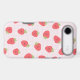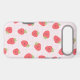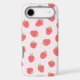 This cute strawberry pattern design features smiling strawberries in a soft pastel aesthetic style.