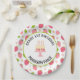 Cute Strawberry Pink Girls 1st Birthday Paper Plate
