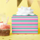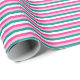 This stylish wrapping paper features horizontal stripes, a timeless classic that's perfect for birthdays, Valentine's Day, Mother's Day and other special occasions. For a traditional touch, try tying it with a grosgrain ribbon, or adding a fancy bow for a more elegant feel. This seamless pattern gift wrap comes on premium quality paper with your choice of a matte or glossy finish. Different length rolls are available from 6 feet - 60 feet. Printed colors: bright pink, light pink, blue-green, teal and white.