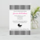 This classic invitation features a retro inspired black stroller carriage and a black and white striped top and bottom. Your custom wording is in a combination of bright pink script text and a black calligraphic font. This invitation would work nicely for a baby girl's or a retro themed baby shower.