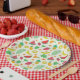This is beautiful colourful summer fruits pattern with palm leaves, monstera leaf and orange flowers. The pattern contains watermelon, strawberry ,mango, banana and pineapple placed on off white background. You can use it for kitchenware or home décor or as accessory for your summer parties . You can customise it by hitting edit design button