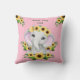 Here's a great gift pillow to commemorate the birth of a sweet baby girl. Each side has an image of a baby elephant with sunflower adornment. Sunflowers are also at the top corners and at the elephant's feet. One side of the pillow has the baby's name and her birth date. The other side has another custom text field. Everything is placed on a pink background. Adorable!