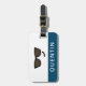 Cute Sunglasses Smiling Face, luggage tag. Features blue colour block tab for name on front and template lines for name and address on back with coordinating blue colour background.