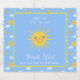 Send your baby shower guests home with this adorable and sweet blue and yellow sunshine themed custom mini sparkling wine bottle label that reads "Pop it when she pops!" The label is customisable, to edit the text click "personalise this template". This custom sparkling wine label features a hand drawn sun and cloudy sky pattern background and a hand drawn illustration of a smiling yellow sun. This makes for a fun and unique baby shower party favour and take home gift!