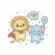 An adorable nursery illustration featuring a brave little lion in a red superhero cape and a sweet blue elephant holding a star balloon. This cheerful and minimalist cartoon design on a clean white background is perfect for kids' bedroom decor, baby shower gifts, and nursery accessories.