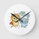 Cute Superhero Lion and Elephant Friends Cartoon Round Clock