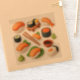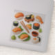 Delight sushi lovers with this playful design featuring an assortment of cartoon-style sushi: salmon nigiri, shrimp, sushi rolls, chopsticks, soy sauce, and wasabi. With its bright and fun 3D look, this design is perfect for foodies, Japanese cuisine fans, or anyone who enjoys whimsical kitchen and dining art. A cheerful and appetizing pattern that makes a unique gift idea for sushi enthusiasts.