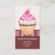 Business card featuring an illustration of a sweet pink cupcake in retro style. The front label image is on a separate file and can be deleted if you do not need it. Beautiful feel-good business card for a cupcake and sweet cake bakery. You can also customise this business card for events for children involving cupcakes.