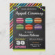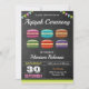 Amaze your guests with this cute aqiqah invite featuring colourful macarons with modern typography on a chalkboard background. Simply add your event details on this easy-to-use template to make it a one-of-a-kind invitation. Flip the card over to reveal a colourful stripes pattern on the back of the card.