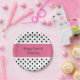 Sweet sixteen party paper plates in a stylish and cute pink, black, and white design that includes black and white polka dots and sweet 16 banner you can personalise with the birthday girl name. Designed for girly parties you want to make a stylish splash.