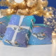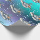 Cute, swimming, sea turtles pattern on a gradient background that has three colours of aqua, purple, and blue. Kids would especially love a birthday present wrapped in their favourite sea turtle image.
