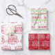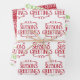 Fun and festive, this gift wrap set is the perfect way to wrap presents this holiday season. The set has the same design in three different colour options: 1. red and green season's greetings on a white background, 2. red season's greetings on a white background, and 3. white season's greetings on a red background.