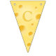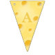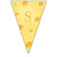 This cute set of triangular pennant flags resemble delicious wedges of Yellow Swiss Cheese. Personalise each flag with your own message to suit your special occasion or decor scheme.
