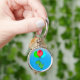 Cute T-Rex Flying With Balloons In Blue Sky Key Ring
