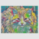 Cute Tabby Cat Colourful Abstract Green Blue Art Tissue Paper