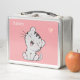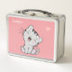 Cute Tabby Cat & Heart on Light Pink Metal Lunch Box