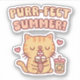 A doodle of a cute orange tabby cat eating ice cream and a lemonade drink at the side. The funny caption reads "Purrfect Summer!"