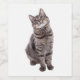 An adorable grey striped domestic shorthair tabby cat looking up, cut out on a white background