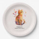 Paper plates with an adorable watercolor illustration. An orange tabby cat looking friendly and happy with hearts swirling around.