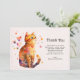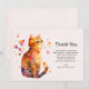 Thank you card with an adorable watercolor illustration. An orange tabby cat looking friendly and happy with hearts swirling around.