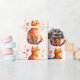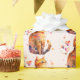 Wrapping paper with an adorable watercolor illustration. An orange tabby cat looking friendly and happy with hearts swirling around.